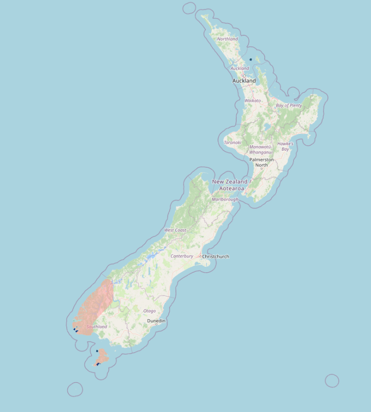 Τα κακάπο βρίσκονται στις περιοχές που είναι μαρκαρισμένες με μπλε